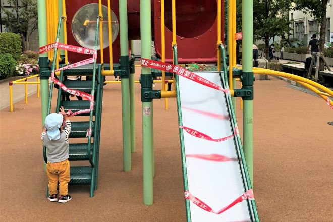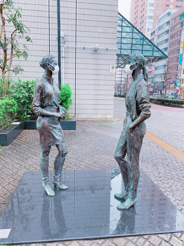 緊急事態宣言中、東京都の職員が街をパトロールしていました。