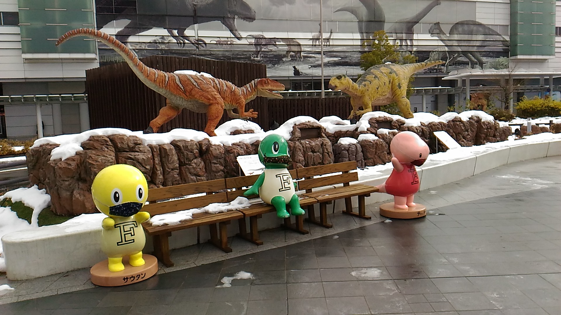 Зимой 2021 года пара моделей на станции Фукуи в префектуре Фукуи были в масках.