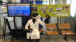 In the winter of 2021, the dinosaur models at Fukui Station in Fukui Prefecture were wearing masks.